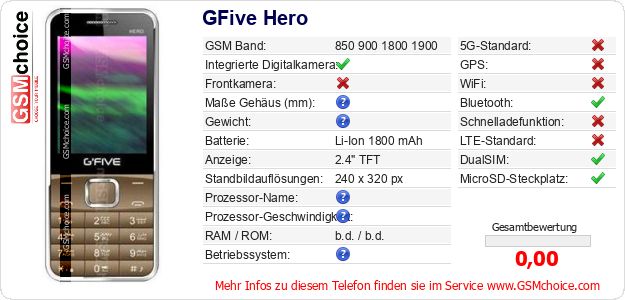 Daten des Mobiltelefons GFive Hero auf Ihrer Seite