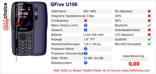 Daten des Mobiltelefons GFive U106 auf Ihrer Seite