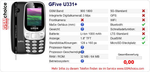 Daten des Mobiltelefons GFive U331+ auf Ihrer Seite