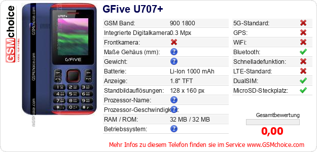 Daten des Mobiltelefons GFive U707+ auf Ihrer Seite