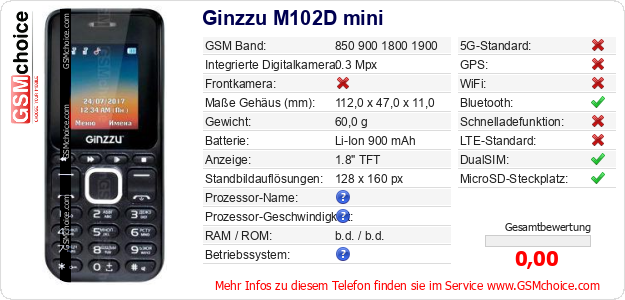 Daten des Mobiltelefons Ginzzu M102D mini auf Ihrer Seite