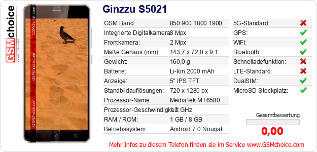Hast du eigene Webseite? Willst du die Informationen über Standarddaten des Handys Ginzzu S5021 irgendwo veröffentlichen? Das ist sehr einfach. Du kannst das Bild herunterladen oder kopieren und auf der Webseite folgenden Code hinzufügen:Das Einfügen von diesem Code verursacht das Anzeigen von dem folgenden Bild: