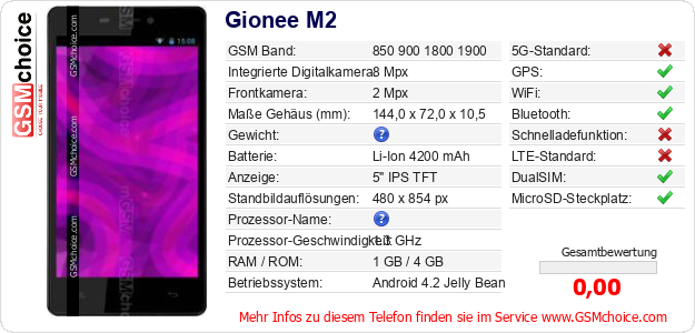 Hast du eigene Webseite? Willst du die Informationen über Standarddaten des Handys Gionee M2 irgendwo veröffentlichen? Das ist sehr einfach. Du kannst das Bild herunterladen oder kopieren und auf der Webseite folgenden Code hinzufügen:Das Einfügen von diesem Code verursacht das Anzeigen von dem folgenden Bild: