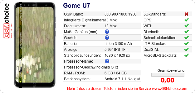 Hast du eigene Webseite? Willst du die Informationen über Standarddaten des Handys Gome U7 irgendwo veröffentlichen? Das ist sehr einfach. Du kannst das Bild herunterladen oder kopieren und auf der Webseite folgenden Code hinzufügen:Das Einfügen von diesem Code verursacht das Anzeigen von dem folgenden Bild: