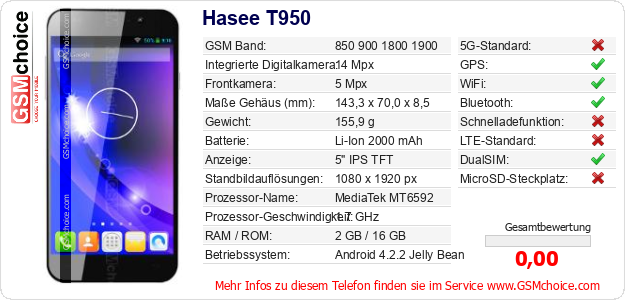 Daten des Mobiltelefons Hasee T950 auf Ihrer Seite