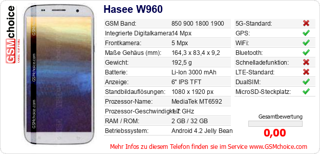 Daten des Mobiltelefons Hasee W960 auf Ihrer Seite