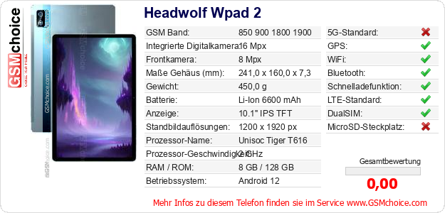 Hast du eigene Webseite? Willst du die Informationen über Standarddaten des Handys Headwolf Wpad 2 irgendwo veröffentlichen? Das ist sehr einfach. Du kannst das Bild herunterladen oder kopieren und auf der Webseite folgenden Code hinzufügen:Das Einfügen von diesem Code verursacht das Anzeigen von dem folgenden Bild: