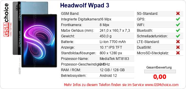 Hast du eigene Webseite? Willst du die Informationen über Standarddaten des Handys Headwolf Wpad 3 irgendwo veröffentlichen? Das ist sehr einfach. Du kannst das Bild herunterladen oder kopieren und auf der Webseite folgenden Code hinzufügen:Das Einfügen von diesem Code verursacht das Anzeigen von dem folgenden Bild: