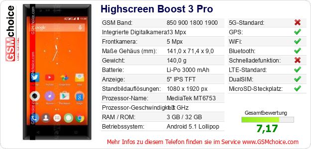 Daten des Mobiltelefons Highscreen Boost 3 Pro auf Ihrer Seite