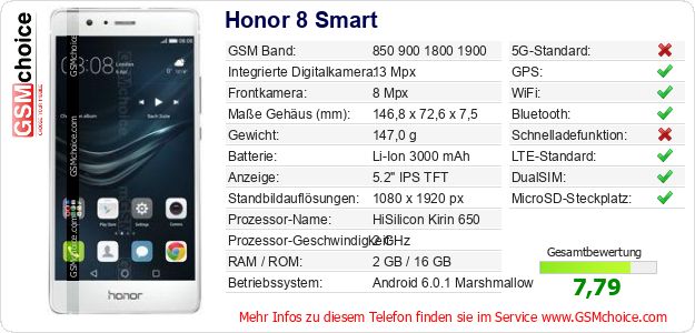 Hast du eigene Webseite? Willst du die Informationen über Standarddaten des Handys Honor 8 Smart irgendwo veröffentlichen? Das ist sehr einfach. Du kannst das Bild herunterladen oder kopieren und auf der Webseite folgenden Code hinzufügen:Das Einfügen von diesem Code verursacht das Anzeigen von dem folgenden Bild: