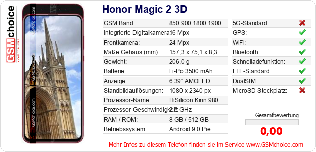 Hast du eigene Webseite? Willst du die Informationen über Standarddaten des Handys Honor Magic 2 3D irgendwo veröffentlichen? Das ist sehr einfach. Du kannst das Bild herunterladen oder kopieren und auf der Webseite folgenden Code hinzufügen:Das Einfügen von diesem Code verursacht das Anzeigen von dem folgenden Bild: