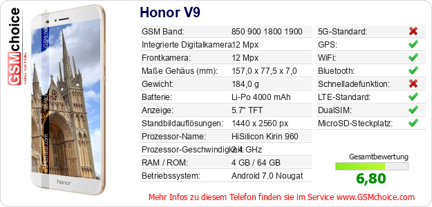 Hast du eigene Webseite? Willst du die Informationen über Standarddaten des Handys Honor V9 irgendwo veröffentlichen? Das ist sehr einfach. Du kannst das Bild herunterladen oder kopieren und auf der Webseite folgenden Code hinzufügen:Das Einfügen von diesem Code verursacht das Anzeigen von dem folgenden Bild: