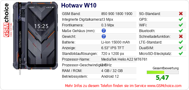 Hast du eigene Webseite? Willst du die Informationen über Standarddaten des Handys Hotwav W10 irgendwo veröffentlichen? Das ist sehr einfach. Du kannst das Bild herunterladen oder kopieren und auf der Webseite folgenden Code hinzufügen:Das Einfügen von diesem Code verursacht das Anzeigen von dem folgenden Bild: