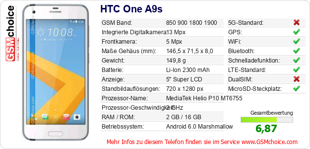 Hast du eigene Webseite? Willst du die Informationen über Standarddaten des Handys HTC One A9s irgendwo veröffentlichen? Das ist sehr einfach. Du kannst das Bild herunterladen oder kopieren und auf der Webseite folgenden Code hinzufügen:Das Einfügen von diesem Code verursacht das Anzeigen von dem folgenden Bild: