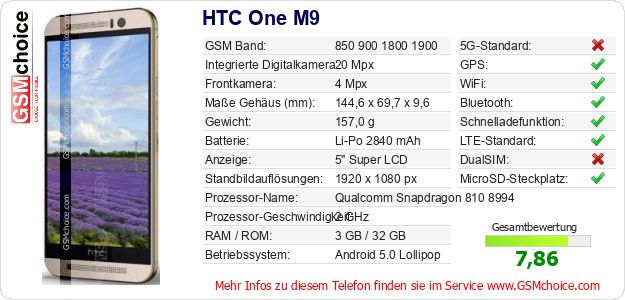Hast du eigene Webseite? Willst du die Informationen über Standarddaten des Handys HTC One M9 irgendwo veröffentlichen? Das ist sehr einfach. Du kannst das Bild herunterladen oder kopieren und auf der Webseite folgenden Code hinzufügen:Das Einfügen von diesem Code verursacht das Anzeigen von dem folgenden Bild: