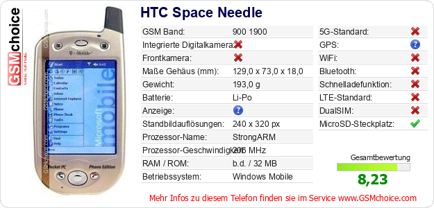 Daten des Mobiltelefons HTC Space Needle auf Ihrer Seite
