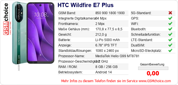 Daten des Mobiltelefons HTC Wildfire E7 Plus auf Ihrer Seite