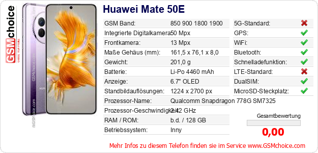 Daten des Mobiltelefons Huawei Mate 50E auf Ihrer Seite