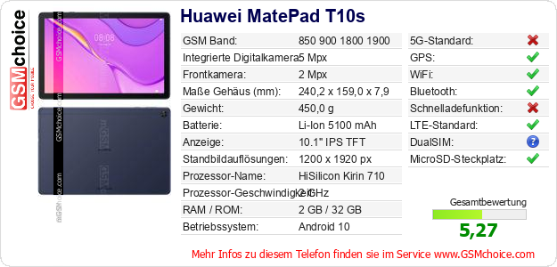 Hast du eigene Webseite? Willst du die Informationen über Standarddaten des Handys Huawei MatePad T10s irgendwo veröffentlichen? Das ist sehr einfach. Du kannst das Bild herunterladen oder kopieren und auf der Webseite folgenden Code hinzufügen:Das Einfügen von diesem Code verursacht das Anzeigen von dem folgenden Bild:
