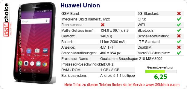 Hast du eigene Webseite? Willst du die Informationen über Standarddaten des Handys Huawei Union irgendwo veröffentlichen? Das ist sehr einfach. Du kannst das Bild herunterladen oder kopieren und auf der Webseite folgenden Code hinzufügen:Das Einfügen von diesem Code verursacht das Anzeigen von dem folgenden Bild: