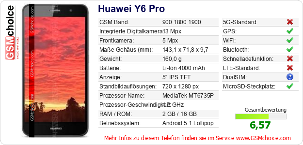 Hast du eigene Webseite? Willst du die Informationen über Standarddaten des Handys Huawei Y6 Pro irgendwo veröffentlichen? Das ist sehr einfach. Du kannst das Bild herunterladen oder kopieren und auf der Webseite folgenden Code hinzufügen:Das Einfügen von diesem Code verursacht das Anzeigen von dem folgenden Bild: