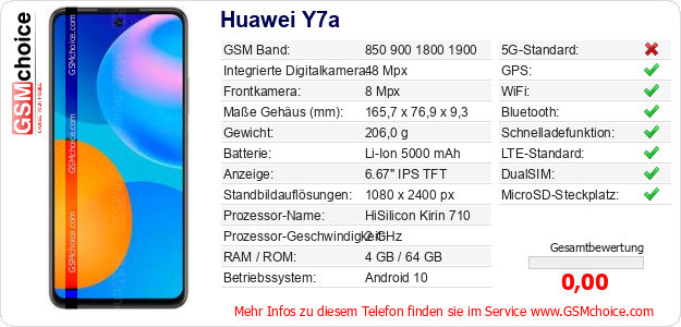 Hast du eigene Webseite? Willst du die Informationen über Standarddaten des Handys Huawei Y7a irgendwo veröffentlichen? Das ist sehr einfach. Du kannst das Bild herunterladen oder kopieren und auf der Webseite folgenden Code hinzufügen:Das Einfügen von diesem Code verursacht das Anzeigen von dem folgenden Bild: