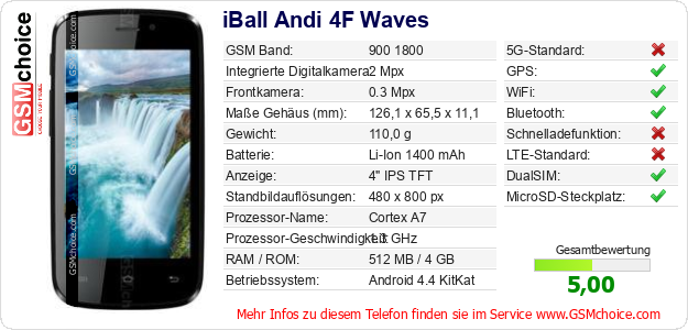 Hast du eigene Webseite? Willst du die Informationen über Standarddaten des Handys iBall Andi 4F Waves irgendwo veröffentlichen? Das ist sehr einfach. Du kannst das Bild herunterladen oder kopieren und auf der Webseite folgenden Code hinzufügen:Das Einfügen von diesem Code verursacht das Anzeigen von dem folgenden Bild: