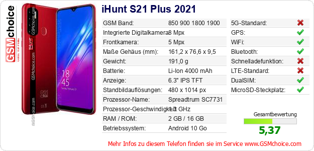 Daten des Mobiltelefons iHunt S21 Plus 2021 auf Ihrer Seite