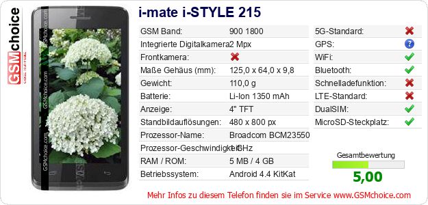 Daten des Mobiltelefons i-mate i-STYLE 215 auf Ihrer Seite