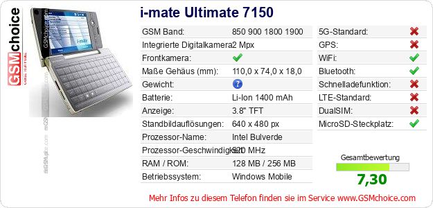 Daten des Mobiltelefons i-mate Ultimate 7150 auf Ihrer Seite