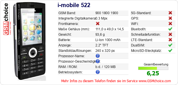 Daten des Mobiltelefons i-mobile 522 auf Ihrer Seite