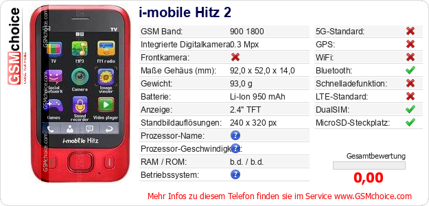 Hast du eigene Webseite? Willst du die Informationen über Standarddaten des Handys i-mobile Hitz 2 irgendwo veröffentlichen? Das ist sehr einfach. Du kannst das Bild herunterladen oder kopieren und auf der Webseite folgenden Code hinzufügen:Das Einfügen von diesem Code verursacht das Anzeigen von dem folgenden Bild: