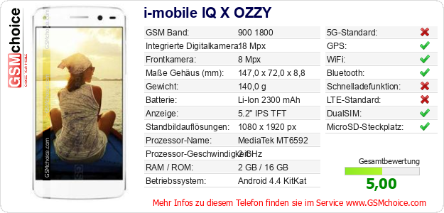 Hast du eigene Webseite? Willst du die Informationen über Standarddaten des Handys i-mobile IQ X OZZY irgendwo veröffentlichen? Das ist sehr einfach. Du kannst das Bild herunterladen oder kopieren und auf der Webseite folgenden Code hinzufügen:Das Einfügen von diesem Code verursacht das Anzeigen von dem folgenden Bild: