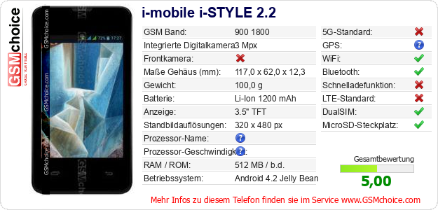Hast du eigene Webseite? Willst du die Informationen über Standarddaten des Handys i-mobile i-STYLE 2.2 irgendwo veröffentlichen? Das ist sehr einfach. Du kannst das Bild herunterladen oder kopieren und auf der Webseite folgenden Code hinzufügen:Das Einfügen von diesem Code verursacht das Anzeigen von dem folgenden Bild: