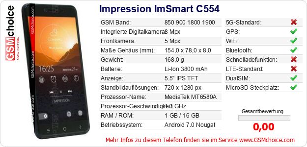 Daten des Mobiltelefons Impression ImSmart C554 auf Ihrer Seite