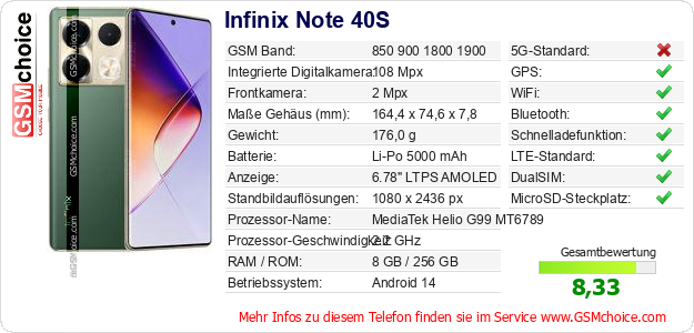 Daten des Mobiltelefons Infinix Note 40S auf Ihrer Seite