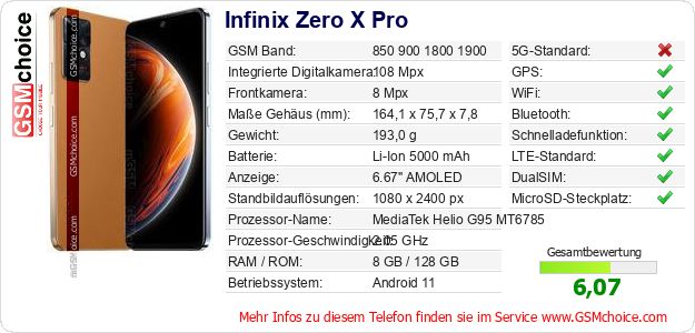 Hast du eigene Webseite? Willst du die Informationen über Standarddaten des Handys Infinix Zero X Pro irgendwo veröffentlichen? Das ist sehr einfach. Du kannst das Bild herunterladen oder kopieren und auf der Webseite folgenden Code hinzufügen:Das Einfügen von diesem Code verursacht das Anzeigen von dem folgenden Bild: