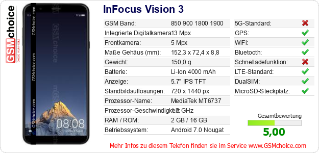 Hast du eigene Webseite? Willst du die Informationen über Standarddaten des Handys InFocus Vision 3 irgendwo veröffentlichen? Das ist sehr einfach. Du kannst das Bild herunterladen oder kopieren und auf der Webseite folgenden Code hinzufügen:Das Einfügen von diesem Code verursacht das Anzeigen von dem folgenden Bild: