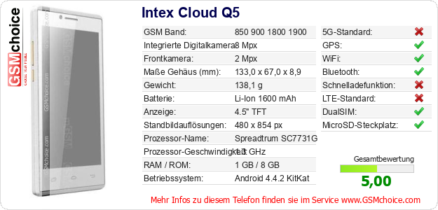 Daten des Mobiltelefons Intex Cloud Q5 auf Ihrer Seite