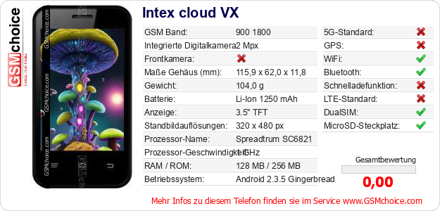 Daten des Mobiltelefons Intex cloud VX auf Ihrer Seite