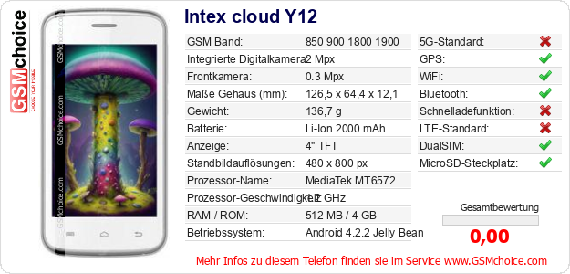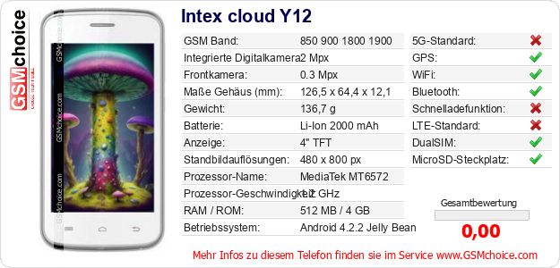 Hast du eigene Webseite? Willst du die Informationen über Standarddaten des Handys Intex cloud Y12 irgendwo veröffentlichen? Das ist sehr einfach. Du kannst das Bild herunterladen oder kopieren und auf der Webseite folgenden Code hinzufügen:Das Einfügen von diesem Code verursacht das Anzeigen von dem folgenden Bild: