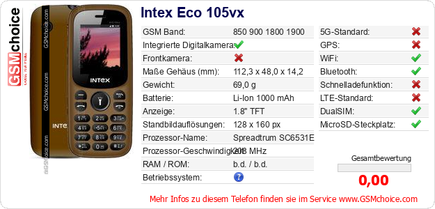 Daten des Mobiltelefons Intex Eco 105vx auf Ihrer Seite