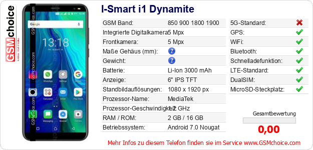 Daten des Mobiltelefons I-Smart i1 Dynamite auf Ihrer Seite
