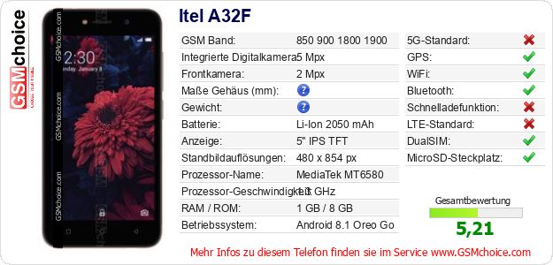 Hast du eigene Webseite? Willst du die Informationen über Standarddaten des Handys Itel A32F irgendwo veröffentlichen? Das ist sehr einfach. Du kannst das Bild herunterladen oder kopieren und auf der Webseite folgenden Code hinzufügen:Das Einfügen von diesem Code verursacht das Anzeigen von dem folgenden Bild: