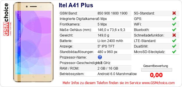 Hast du eigene Webseite? Willst du die Informationen über Standarddaten des Handys Itel A41 Plus irgendwo veröffentlichen? Das ist sehr einfach. Du kannst das Bild herunterladen oder kopieren und auf der Webseite folgenden Code hinzufügen:Das Einfügen von diesem Code verursacht das Anzeigen von dem folgenden Bild: