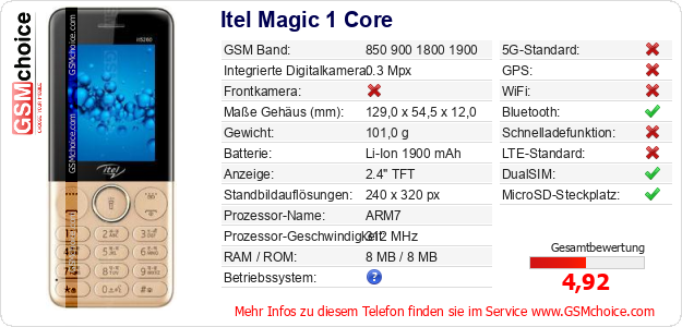 Hast du eigene Webseite? Willst du die Informationen über Standarddaten des Handys Itel Magic 1 Core irgendwo veröffentlichen? Das ist sehr einfach. Du kannst das Bild herunterladen oder kopieren und auf der Webseite folgenden Code hinzufügen:Das Einfügen von diesem Code verursacht das Anzeigen von dem folgenden Bild: