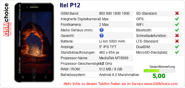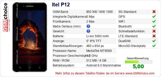 Hast du eigene Webseite? Willst du die Informationen über Standarddaten des Handys Itel P12 irgendwo veröffentlichen? Das ist sehr einfach. Du kannst das Bild herunterladen oder kopieren und auf der Webseite folgenden Code hinzufügen:Das Einfügen von diesem Code verursacht das Anzeigen von dem folgenden Bild:
