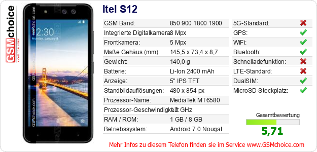 Hast du eigene Webseite? Willst du die Informationen über Standarddaten des Handys Itel S12 irgendwo veröffentlichen? Das ist sehr einfach. Du kannst das Bild herunterladen oder kopieren und auf der Webseite folgenden Code hinzufügen:Das Einfügen von diesem Code verursacht das Anzeigen von dem folgenden Bild: