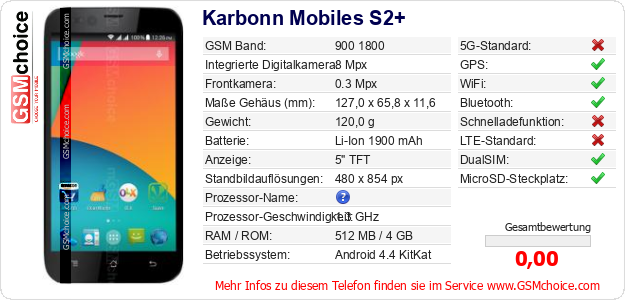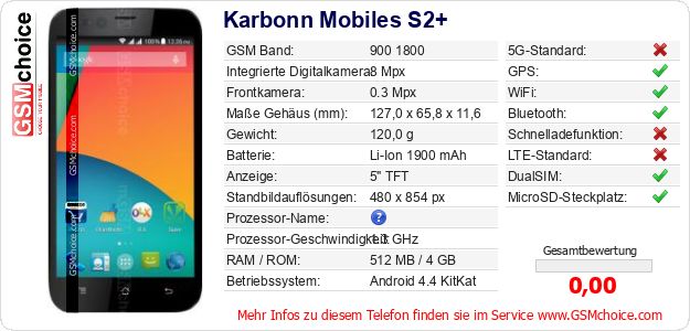 Daten des Mobiltelefons Karbonn Mobiles S2+ auf Ihrer Seite