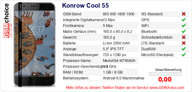 Daten des Mobiltelefons Konrow Cool 55 auf Ihrer Seite